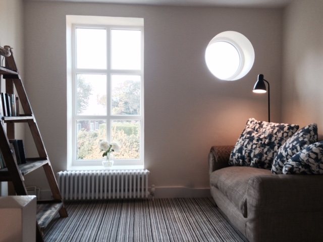 Additionally, the upstairs landing has a cosy reading area with loveseat looking out towards the sea and a plentiful book supply.